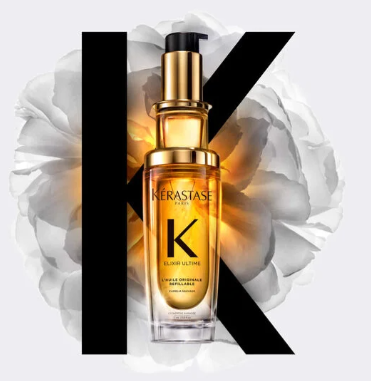 L'Huile Originale Elixir Ultime de Kérastase: un aceite capilar excepcionalmente versátil que envuelve el cabello en un velo de luminosidad. Su delicada textura se funde con la fibra capilar, revelando un brillo y una suavidad irresistible.